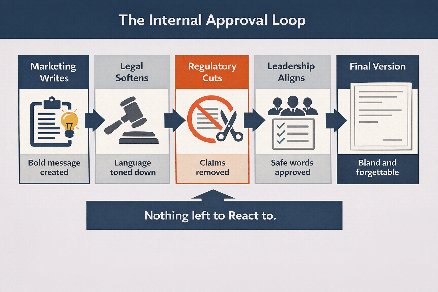 Teams spend months refining language to remove risk. Claims get softened. Statements get qualified. Sentences get polished until they are impossible to object to. The outcome is careful and balanced. Hard to disagree with. But also, impossible to remember.