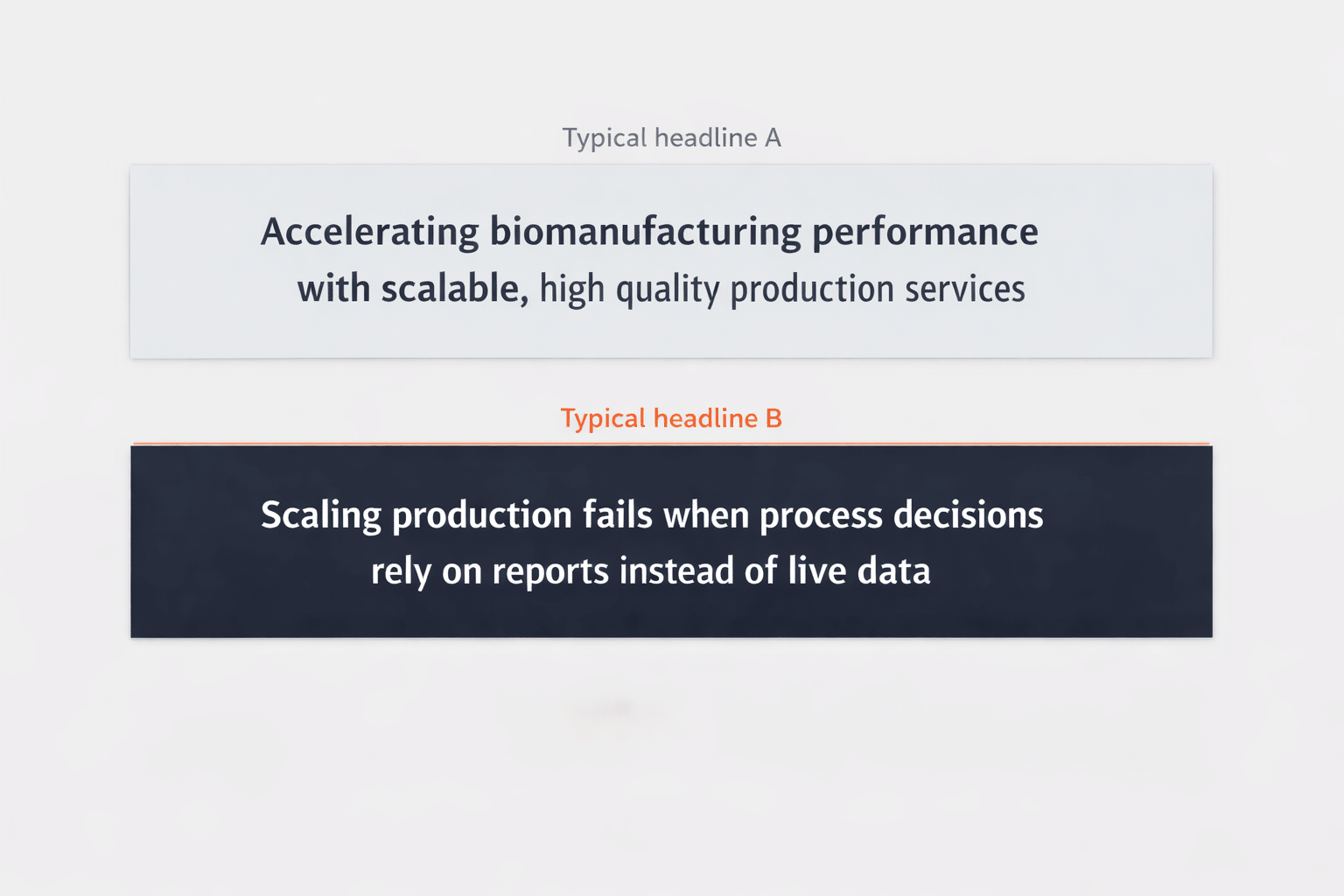 Both headlines are accurate. Both would pass internal review. But one describes capability in a way everyone else does. The other signals belief and direction.